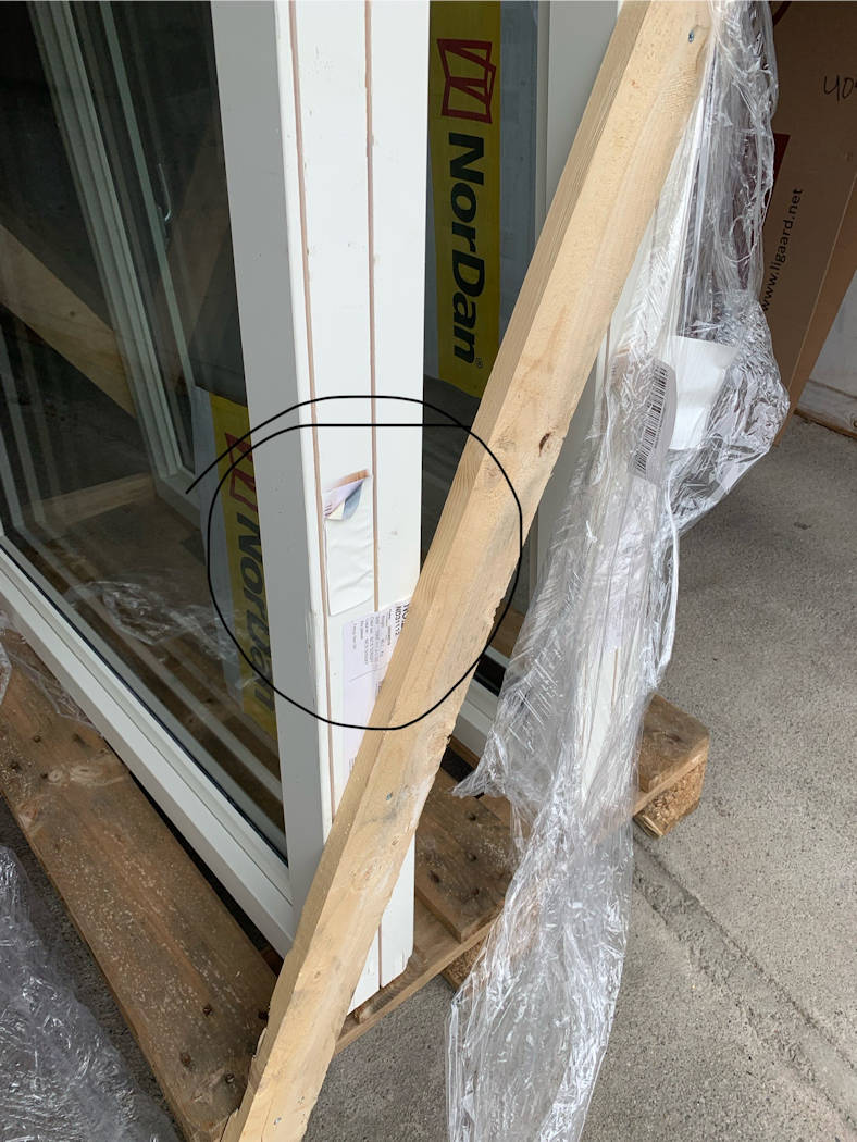 Ved emballering av vinduer for sending kan det benyttes emballasje som stiftes fast til vinduet på steder hvor stiftehull eller små flisutslag ikke vil være synlige etter montering. Dette er ikke å regne som en mangel og gir ikke grunnlag for reklamasjon.