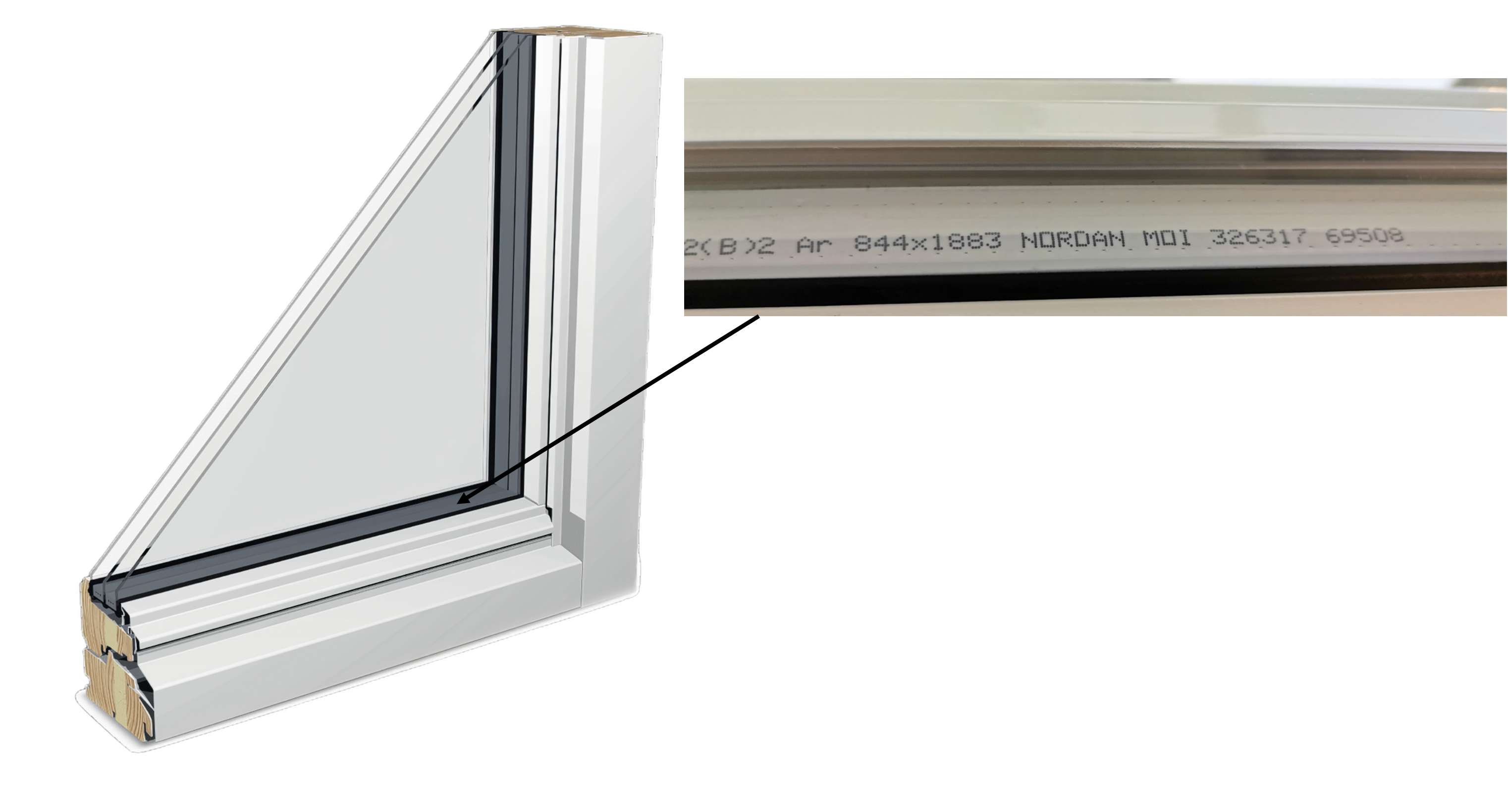 Ordrenr og annen informasjon vi trenger står notert i glasskoden som sitter i spaceren inne i glasset.